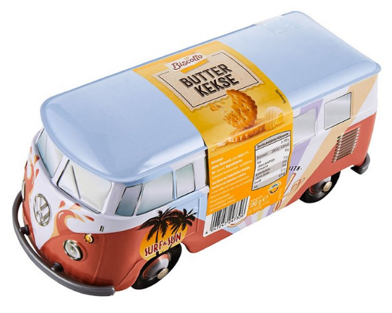 VW Bulli, Blech, lackiert, VW Lizenzhologramm, Plätzchenfüllung unter abnehmbaren Dach: 4.99€…… bitte einloggen, um den Rest dieses Beitrages zu lesen