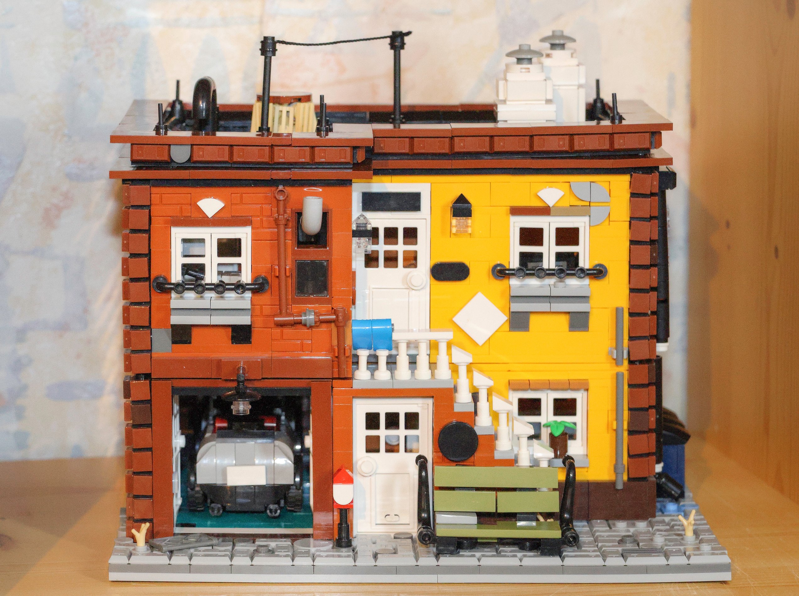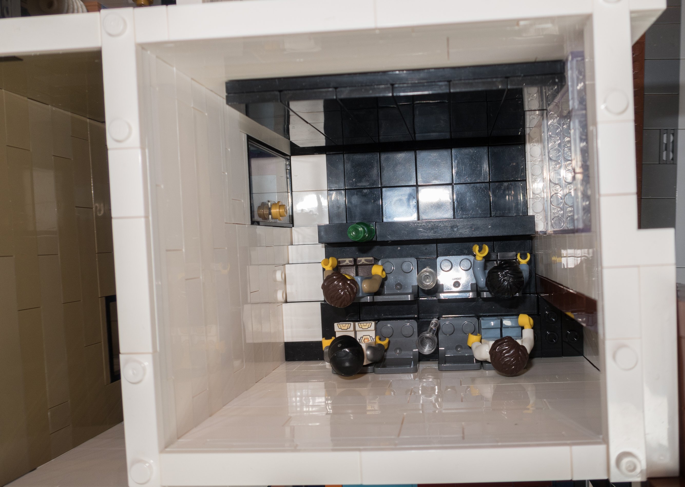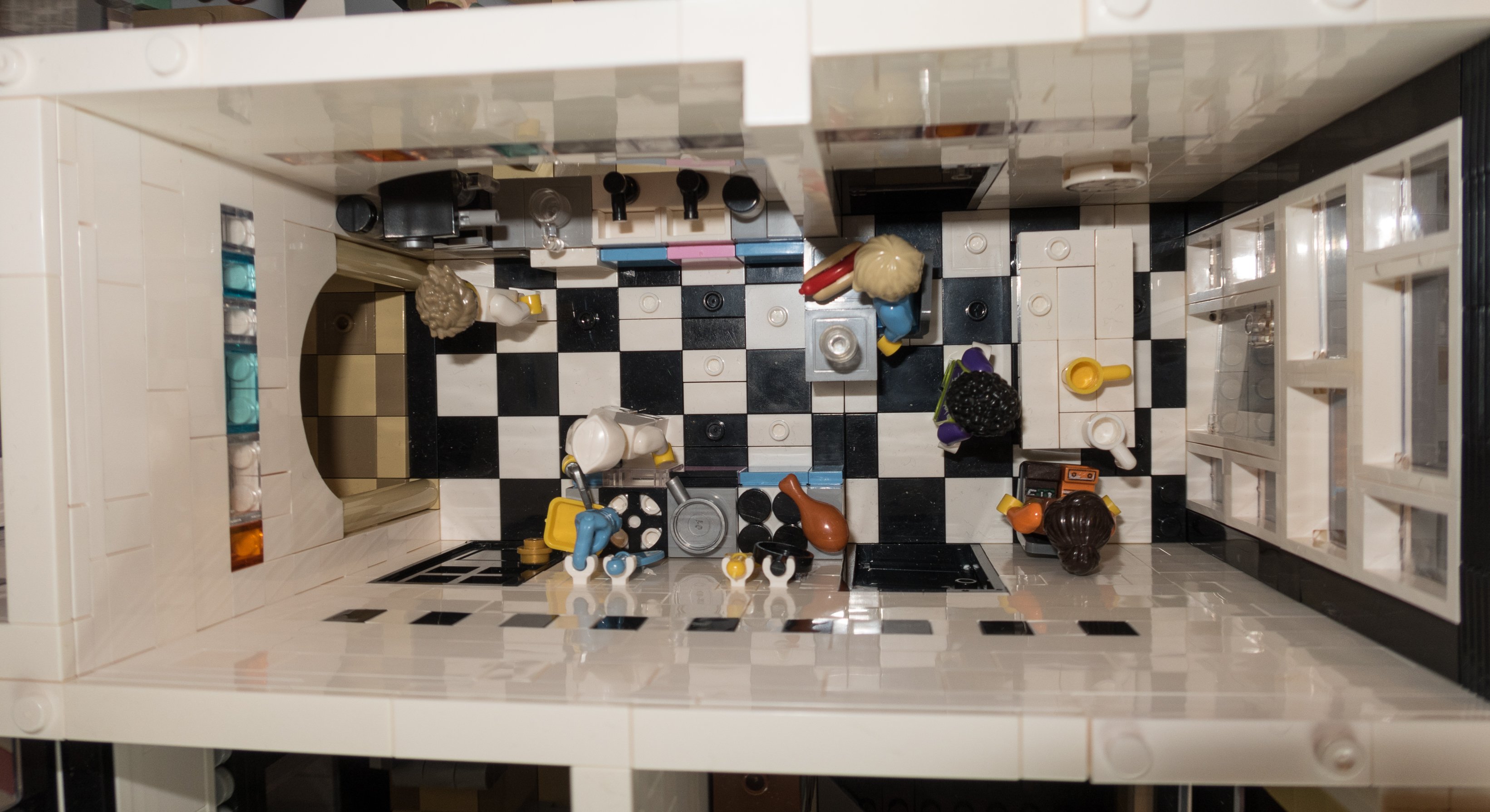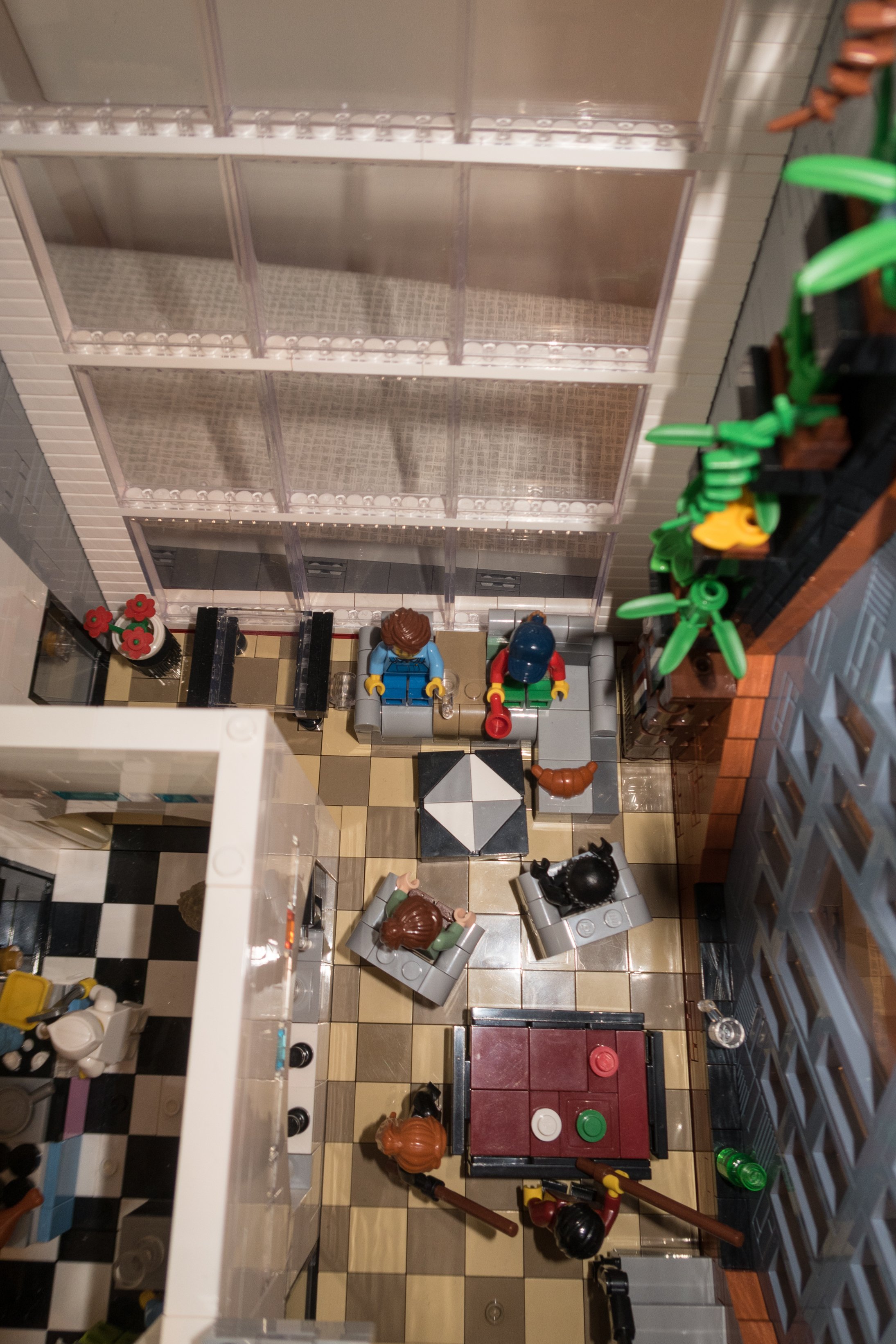 Das Lego Original Coffe Corner ist innen komplett leer bis auf zwei Treppen mit Geländer