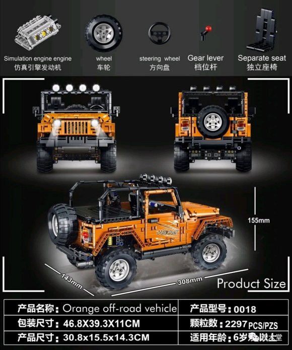 Jeep Wrangler als “Orange Off-road vehicle” mit 2297 Teilen: