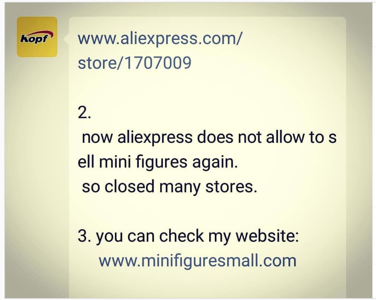 Offenbar geht Aliexpress gegen den Verkauf von legoähnlichen Minifiguren vor?